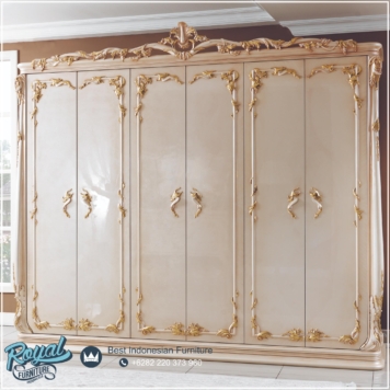 Lemari Pakaian Mewah 6 Pintu Ivory Ukiran Klasik Jepara Venue