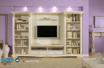 Bufet Tv Minimalis Vivaldi Classic Stand Model Terbaru – Produk Set Bufet Tv Mewah Furniture Jepara yang kami tawarkan dengan desain terbaru produk asli dari mebel jepara yang memiliki kualitas yang sangat baik dari mebel jepara. Bahan material kayu yang kami gunakan merupakan kayu Jati pilihan yang berkualitas baik. Bufet TV Mewah terbaru yang kami tawarkan pada anda ini didukung dengan aplikasi Finishing White Duco (NC) yang terbaik dan tidak mudah pudar karena kami selalu menggunakan bahan baku yang berkualitas baik.