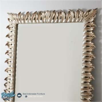 Bingkai Pigura Ukir Jepara – Dikerjakan oleh pengrajin mebel jepara dengan kontruksi yang sangat kuat dan di ukir langsung oleh tukang asli jepara (Handmade). Sehingga produk pigura cermin berdiri ini mempunyai nilai seni yang sangat tinggi, dengan finishing warna Antiques Silver (Duco) dengan lapisan anti gores (Top Coat) untuk melindungi warna agar awet dan tidak mudah pudar menambahkan nuansa elegan pada produk ini.