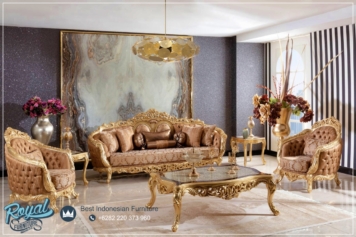 Memikirkan sebuah desain ruang tamu yang mewah dan elegan, tentunya anda membutuhkan sebuah sofa tamu yang indah dan nyaman. Model terbaru sofa ruang tamu warna gold dengan gaya classic eropa, dengan hiasan ukiran khas mebel jepara yang sangat megah mempunyai nilai seni yang sangat tinggi. Produk unggulan kami dengan desain elegan dengan nuansa klasik sangat cocok untuk ruangan tamu anda, desain setiap produk kami sangat detail dan rapih dengan selalu mempertimbangkan kontruksi yang sangat kuat. Kami menggunakan bahan baku Kayu Mahoni TPK Perhutani atau Kayu Jati TPK Perhutani yang sudah kami seleksi tingkat kekeringan dan kekuatan pada kayu tersebut, sehingga benar-benar layak untuk di produksi.