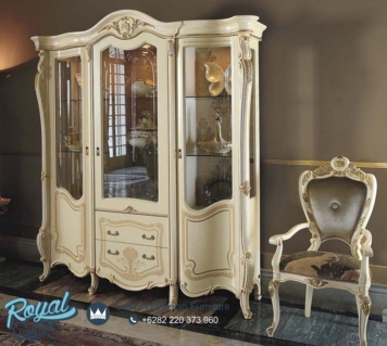 Jual Lemari Hias Mewah Jepara Terbaru Harga Murah –  dihiasi dengan motif ukiran klasik mebel jepara yang akan menambah kesan mewah dan elegan pada produk almari hias mewah ini. Almari hias mewah ini di Finishing menggunakan warna Broken White Duco (NC). Produk ini banyak di minati karena memiliki kualitas yang baik, jika anda mencari produk lemari hias yang berkualitas, produk Furniture Jepara ini merupakan pilihan yang tepat bagi anda.