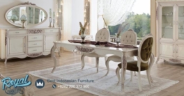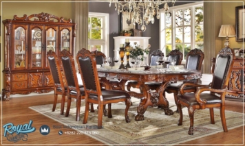 Jual Meja Makan Mewah Terbaru – Adalah desain meja makan ukir terbaru dengan desain antik dengan ukiran mebel jepara asli di lengkapi dengan kursi meja makan ukir jepara yang sangat megah dan elegan sangat cocok untuk ruang makan mewah anda. Produk furniture jepara terbaru ini kami menggunakan bahan Kayu Mahoni/Jati TPK Perhutani (Grade A). Yang sudah kami seleksi kekuatan dan kekeringan pada bahan kayu tersebut sehingga kayu benar-benar layak untuk di produksi, di kerjakan dan di ukir langsung (Handmade) oleh pengrajin mebel jepara yang sudah piawai dan handal pada bidangnya sehingga memeberikan produk meja makan jati mewah klasik terbaru dengan kualitas terbaik.