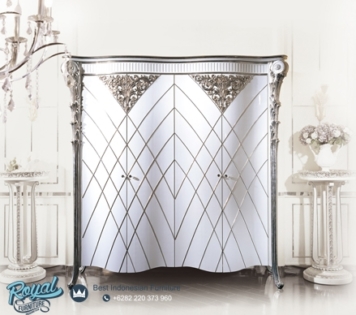 Katalog Gambar Lemari Hias Luxury Italian Design Mewah Terbaru – Produk furniture Almari Pakaian di Finishing menggunakan Aplikasi Finishing Silver Duco (NC) berkualitas halus sehingga akan nampak mewah dan warna tidak mudah pudar sehingga sangat berkualitas.