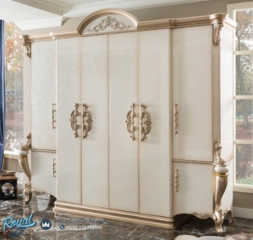 Jual Lemari Pakaian Mewah Revenu Klasik Mewah Terbaru – Produk furniture Almari Pakaian di Finishing menggunakan Aplikasi Finishing White combi Gold Duco (NC) berkualitas halus sehingga akan nampak mewah dan warna tidak mudah pudar sehingga sangat berkualitas.