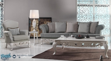 Katalog Gambar Set Sofa Tamu Koltuk Modern Design Terbaru ini kami buat menggunakan bahan baku yang berkualitas bagus dan menggunakan bahan Finishing White Duco (NC) serta menggunakan Busa LJ26 dan kain jok Bludru / Oscar Kulit halus yang berkualitas baik. Kursi tamu mewah ini dikerjakan oleh pengrajin asli Mebel Jepara yang sudah handal dan ahli serta sudah berpengalaman dibidangnya, sehingga menghasilkan produk kursi tamu mewah yang kuat, kokoh dan awet serta nyaman untuk digunakan.