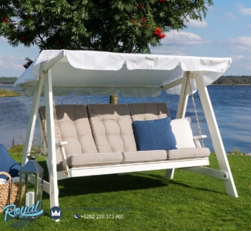 Harga & Cara Pemesanan Kursi Ayunan Taman Minimalis Terbaru Putih Kayu Jepara Minisso :