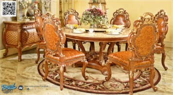 - Formasi : 1 Meja +6/8 Kursi (bisa dipesan dengan buffet sideboard dan lemari kaca hias mewah)