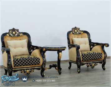 Selanjutnya kursi teras gold klasik jepara ini di finishing menggunakan warna Black Kombinasi Gold Classic Duco (Duco) dengan bahan berkualitas dengan lapisan clear akhir (Top Coat) untuk melindungi warna agar awet dan tidak mudah pudar sehingga produk kami benar-benar berkualitas. Model sofa teras klasik eropa ini di balut menggunakan bahan Kain Bludru Motif (Halus & Tebal) dengan Busa Royal Foam LJ26 (Empuk & Kenyal) sehingga sangat nyaman untuk di duduki.