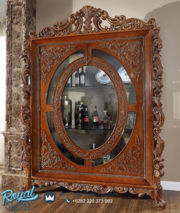 Lemari Hias Klasik Kaca Ukir Jepara Kayu Jati Italian Style Terbaru