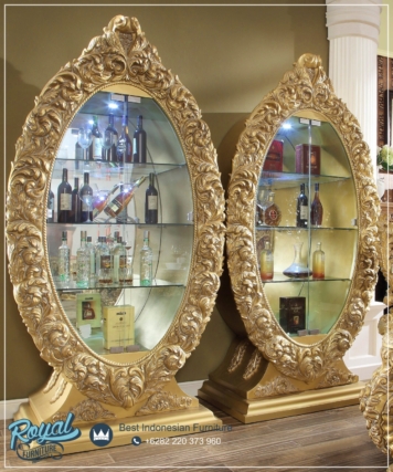Model lemari hias klasik mewah terbaru ini, di finishing menggunakan warna Gold (Duco) dengan hasil yang maksimal atau anda bisa memilih warna sesuai keinginan anda. Produk ini mempunyai kontruksi yang kuat dan kokoh. Lemari pajangan klasik ini di lengkapi 2 pintu, sehingga dapat menampung barang hiasan anda. Setiap tamu yang berkunjung kerumah anda pasti akan melirik lemari hias dengan ukiran khas jepara ini, dan segera miliki produk asli furniture berkualitas.