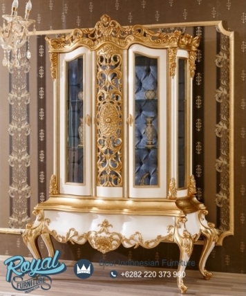 Lemari Hias Mewah Victory Ukir Mewah Model Terbaru – dihiasi dengan motif ukiran klasik mebel jepara yang akan menambah kesan mewah dan elegan pada produk almari hias mewah ini. Almari hias mewah ini di Finishing menggunakan warna White combi Gold Duco (NC). Produk ini banyak di minati karena memiliki kualitas yang baik, jika anda mencari produk lemari hias yang berkualitas, produk Furniture Jepara ini merupakan pilihan yang tepat bagi anda.