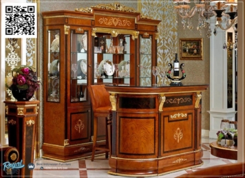 Furniture meja bar klasik yang dirancang dengan gaya elegan dan timeless dengan model kursi cafe jepara untuk meja mini bar, sering terbuat dari kayu berkualitas seperti jati dan mahoni dengan ukiran detail, finishing marmer klasik glossy mewah, atau sentuhan luxury. Desainnya biasanya menampilkan elemen dekoratif seperti kaki meja yang kokoh, aksen logam, serta lemari kaca penyimpanan untuk botol serta gelas.