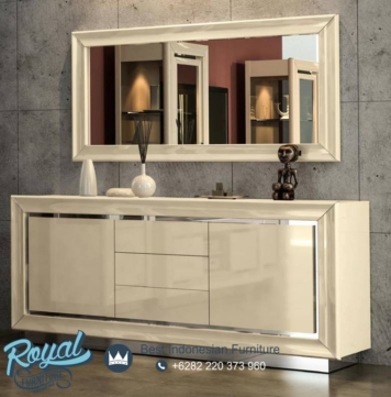 Meja Console Ivory High Gloss Minimalis Model Terbaru – ini di lengkapi cermin ukir mewah menambah kesan mewah pada meja console ruangan anda, dengan desain terbaru menambah kesan Mewah Modern untuk ruangan rumah mewah anda. Anda juga bisa menambahkan cermin sebagai produk pelengkap meja console ini juga dengan memesan langsung pada kami.