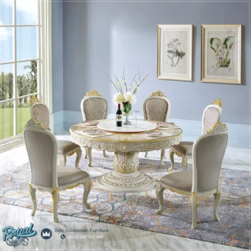 Luxury Dining Set Meja Makan Bulat Mewah Klasik Modern 6 Kursi Ukir Royal Furniture Jepara