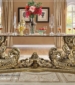 Desain meja makan klasik yang di beri sentuhahan warna finishing Gold Antique (Duco), menonjolkan kesan mewah dan eksklusif. Motif emas terlihat pada setiap ukiran khas mebel jepara menjadikan setiap seni ukir yang ada di meja makan mewah ini terlihat sangat cantik, selain itu juga di tambahkan Busa Royal Foam (LJ26) Empuk & kenyal dengan di balut Kain Oscar Leather (Impor) menambah keistimewaan pada produk ini.