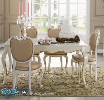 Meja Makan Klasik Model Arabian Mewah Terbaru – Untuk memberikan kesan mewah kami menggunakan aplikasi Finishing White combi Gold Duco (NC) dan joknya menggunakan Kain jok Bludru / Oscar Kulit Halus yang bermutu baik juga ditunjang dengan Busa LJ 26 yang akan terasa kenyal dan empuk saat anda mendudukinya, segera miliki set meja makan mewah ini untuk mempercantik tampilan ruang makan dalam rumah Anda.