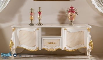 Meja TV Klasik Model Jepara Terbaru – dihiasi dengan motif ukiran klasik mebel jepara yang akan menambah kesan mewah dan elegan pada produk bufet tv mewah ini. Bufet TV mewah ini di Finishing menggunakan warna White combi Gold Duco (NC). Produk ini banyak di minati karena memiliki kualitas yang baik, jika anda mencari produk meja tv yang berkualitas, produk Furniture Jepara ini merupakan pilihan yang tepat bagi anda.
