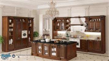 Model Kitchen Set Jati Klasik Ukiran Mewah Terbaru Natural Custom