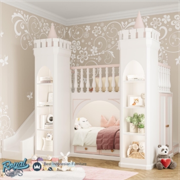 Tempat Tidur Istana Anak Mewah – Produk furniture custom design ranjang anak dengan model headboard divan karakter terbaru style kastil yang sangat cantik dan elegan untuk kamar anak Anda. Ranjang anak ini di buat oleh pengrajin mebel jepara yang sudah handal, sehingga pekerjaan akan halus dan rapih. di lengkapi lemari pakaian dengan laci ukiran jepara asli yang sudah handal pada bidangnya sehingga hasil akan maksimal dan mempunyai nilai seni yang sangat tinggi.