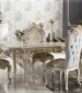 Desain meja makan yang di beri sentuhahan warna finishing Broken White Combi Gold (Duco) menonjolkan kesan mewah dan eksklusif. Motif emas terlihat pada setiap ukiran khas mebel jepara menjadikan setiap seni ukir yang ada di meja makan mewah ini terlihat sangat cantik, selain itu juga di tambahkan Busa Royal Foam (LJ26) Empuk & kenyal dengan di balut Kain Bludru Motif Impor Turkey menambah keistimewaan pada produk ini.