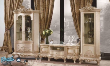 Set Bufet TV Mewah Kalgost Klasik Ukiran Terbaru – dihiasi dengan motif ukiran klasik mebel jepara yang akan menambah kesan mewah dan elegan pada produk almari hias mewah ini. Almari hias mewah ini di Finishing menggunakan warna Broken White Duco (NC). Produk ini banyak di minati karena memiliki kualitas yang baik, jika anda mencari produk lemari hias yang berkualitas, produk Furniture Jepara ini merupakan pilihan yang tepat bagi anda.