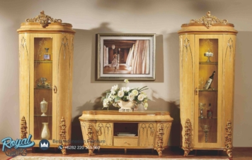 Set Bufet TV Mewah Kleopatra Furniture Mewah Terbaru – dihiasi dengan motif ukiran klasik mebel jepara yang akan menambah kesan mewah dan elegan pada produk almari hias mewah ini. Almari hias mewah ini di Finishing menggunakan warna Gold Duco (NC). Produk ini banyak di minati karena memiliki kualitas yang baik, jika anda mencari produk lemari hias yang berkualitas, produk Furniture Jepara ini merupakan pilihan yang tepat bagi anda.