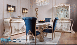 Set Kursi Meja Makan Kayu Jati Beverly Furniture Mewah Terbaru – Model Set Kursi Meja Makan Kayu Jati Beverly Furniture Mewah Terbaru ini memiliki desain Furniture Modern mewah yang dapat anda tempatkan di ruang makan dalam rumah Anda, set meja makan mewah ini dibuat menggunakan Bahan/Material Kayu Jati Grade A dari TPK perhutani didukung dengan konstruksi yang tepat untuk membuat produk ini kokoh, kuat, dan akan tahan lama untuk anda gunakan karena dibuat oleh pengrajin Mebel Jepara yang sudah berpengalaman dan ahli dalam pembuatan produk Furniture Jepara yang berkualitas bagus.