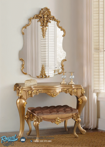 Set Meja Console Mewah Ukiran Dengan Kaca Terbaru – ini di lengkapi cermin ukir mewah menambah kesan mewah pada meja console ruangan anda, dengan desain terbaru menambah kesan Mewah Modern untuk ruangan rumah mewah anda. Anda juga bisa menambahkan cermin sebagai produk pelengkap meja console ini juga dengan memesan langsung pada kami.