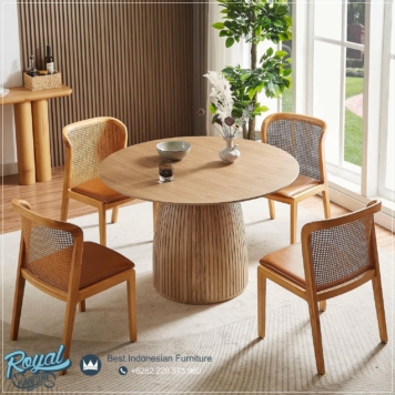 Detail dan Ukuran Meja Makan Jepara Set Kursi Cafe Rotan Premium Jati Terbaru