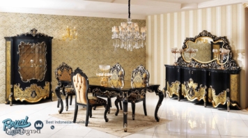 Set Meja Makan Mewah Berguzar Black Gold Furniture Dining Room Set Terbaru – Model Set Meja Makan Mewah Berguzar Black Gold Furniture Dining Room Set Terbaru ini memiliki desain Furniture Modern mewah yang dapat anda tempatkan di ruang makan dalam rumah Anda, set meja makan mewah ini dibuat menggunakan Bahan/Material Kayu Mahoni Grade A dari TPK perhutani didukung dengan konstruksi yang tepat untuk membuat produk ini kokoh, kuat, dan akan tahan lama untuk anda gunakan karena dibuat oleh pengrajin Mebel Jepara yang sudah berpengalaman dan ahli dalam pembuatan produk Furniture Jepara yang berkualitas bagus.