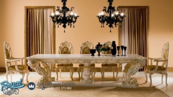 Set Meja Makan Mewah Dining Room Table Luxury Gold Terbaru – Model Set Meja Makan Mewah Dining Room Table Luxury Gold Terbaru ini memiliki desain Furniture Modern mewah yang dapat anda tempatkan di ruang makan dalam rumah Anda, set meja makan mewah ini dibuat menggunakan Bahan/Material Kayu Mahoni Grade A dari TPK perhutani didukung dengan konstruksi yang tepat untuk membuat produk ini kokoh, kuat, dan akan tahan lama untuk anda gunakan karena dibuat oleh pengrajin Mebel Jepara yang sudah berpengalaman dan ahli dalam pembuatan produk Furniture Jepara yang berkualitas bagus.