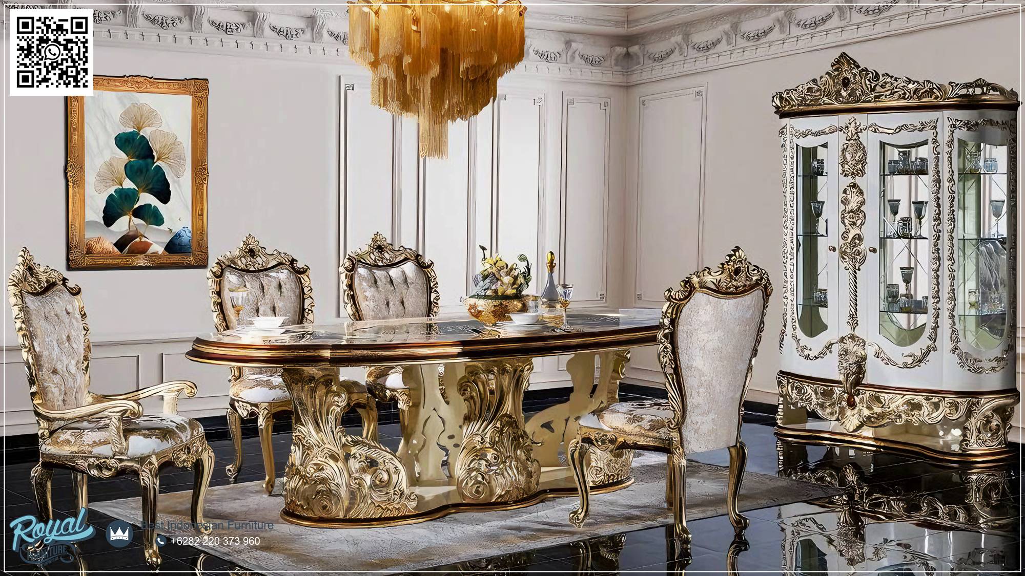 Dining Set Meja Makan Mewah Gold Ukir Klasik Jepara Terbaru Royal Furniture
