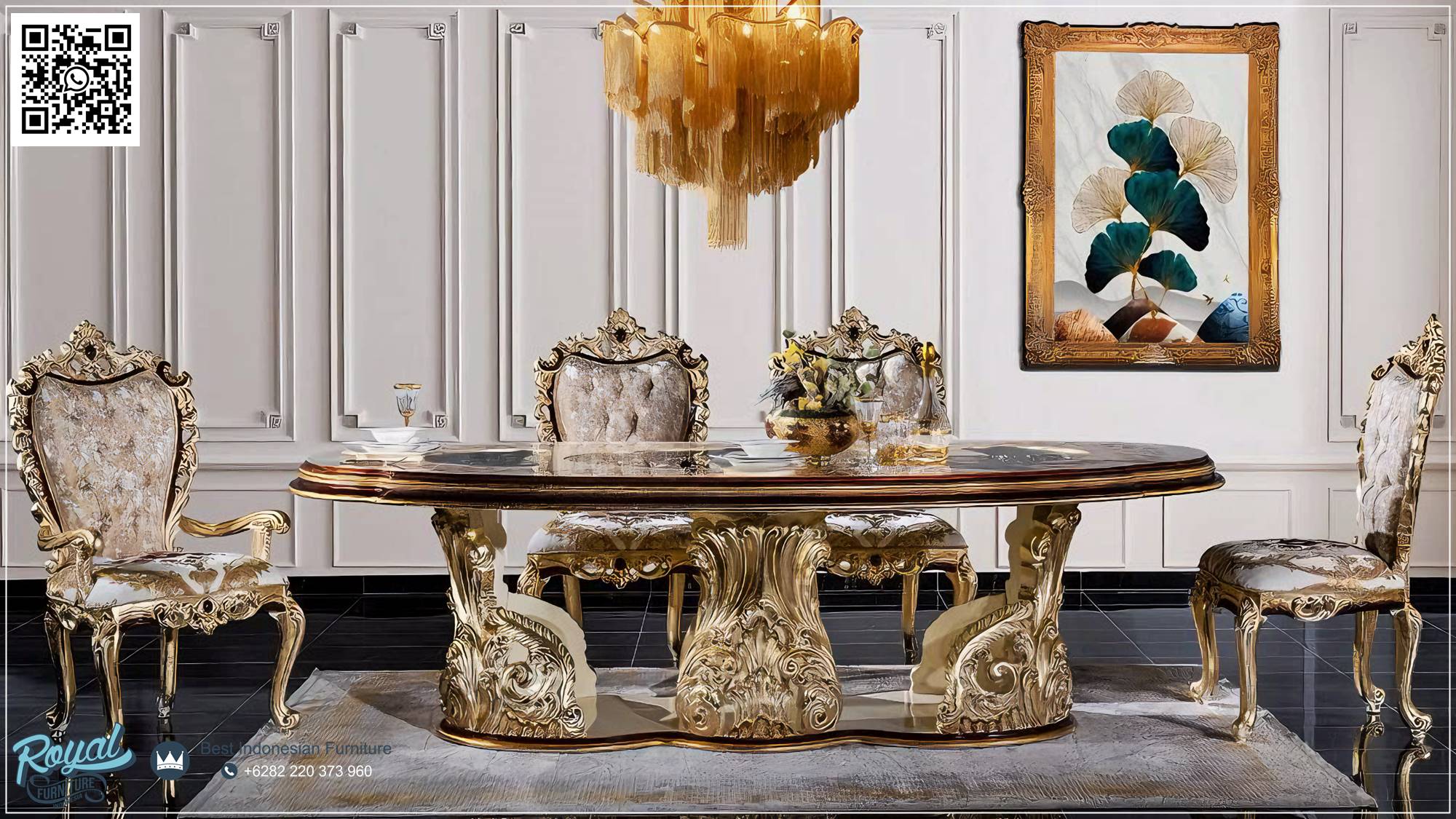 Harga & Cara Pemesanan Set Meja Makan Mewah Gold Ukir Klasik Jepara Terbaru :