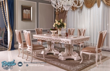 Set Meja Makan Mewah Jepara Baroque Style Italian Putih Duco Terbaru