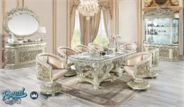 Set Meja Makan Mewah Kayu Jati Terbaru Domenica – Merupakan produk furniture jepara terbaru meja makan jati ukiran jepara klasik terbaru (custom design) ini memiliki desain furniture luxury elegan yang dapat anda tempatkan di ruang makan dalam rumah mewah anda, set meja makan mewah model terbaru ini dibuat menggunakan Bahan/Material Kayu Jati TPK Perhutani (Grade A/Oven) dari TPK perhutani legal wood didukung dengan konstruksi yang tepat untuk membuat produk ini kokoh, kuat, dan akan tahan lama untuk anda gunakan karena dibuat oleh pengrajin mebel jepara yang sudah handal dan berpengalaman dan ahli dalam pembuatan produk furniture jepara yang berkualitas.