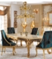 Set Meja Makan Mewah Klasik Jepara Milas Turki Terbaru – Untuk memberikan kesan mewah kami menggunakan aplikasi Finishing Gold Duco (NC) dan joknya menggunakan Kain jok Bludru / Oscar Kulit Halus yang bermutu baik juga ditunjang dengan Busa LJ 26 yang akan terasa kenyal dan empuk saat anda mendudukinya, segera miliki set meja makan mewah ini untuk mempercantik tampilan ruang makan dalam rumah Anda.