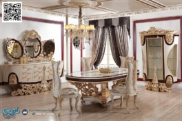 Set Meja Makan Mewah Ukiran Classic Royal Kingdom Terbaru – Model Set Meja Makan Mewah Ukiran Classic Royal Kingdom Terbaru ini memiliki desain Furniture Modern mewah yang dapat anda tempatkan di ruang makan dalam rumah Anda, set meja makan mewah ini dibuat menggunakan Bahan/Material Kayu Mahoni Grade A dari TPK perhutani didukung dengan konstruksi yang tepat untuk membuat produk ini kokoh, kuat, dan akan tahan lama untuk anda gunakan karena dibuat oleh pengrajin Mebel Jepara yang sudah berpengalaman dan ahli dalam pembuatan produk Furniture Jepara yang berkualitas bagus.