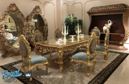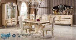 Set Meja Makan Mewah Ukiran Klasik Jepara Travilion Silver Terbaru