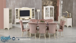 Set Meja Makan Modern Formal Dining Room Mewah Terbaru – Model Set Meja Makan Modern Formal Dining Room Mewah Terbaru ini memiliki desain Furniture Modern mewah yang dapat anda tempatkan di ruang makan dalam rumah Anda, set meja makan mewah ini dibuat menggunakan Bahan/Material Kayu Mahoni Grade A dari TPK perhutani didukung dengan konstruksi yang tepat untuk membuat produk ini kokoh, kuat, dan akan tahan lama untuk anda gunakan karena dibuat oleh pengrajin Mebel Jepara yang sudah berpengalaman dan ahli dalam pembuatan produk Furniture Jepara yang berkualitas bagus.