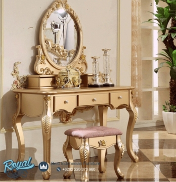 Produk Set Meja Rias Mewah Diana Gold Semi Klasik Terbaru ini kami tawarkan dengan harga Furniture Jepara Murah berkualitas segera dapatkan Meja Rias terbaru ini hanya dari ROYAL FURNITURE Hubungi Kontak Kami Untuk Pemesanan .