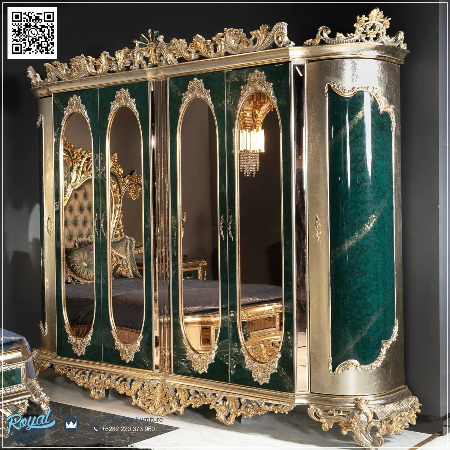 - Lemari Pakaian Pintu 6 Set Tempat Tidur Mewah Royal Gold Klasik Jepara