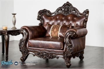 Accent Chairs Sofa Kulit Mewah Ukiran Jati Jepara Terbaru