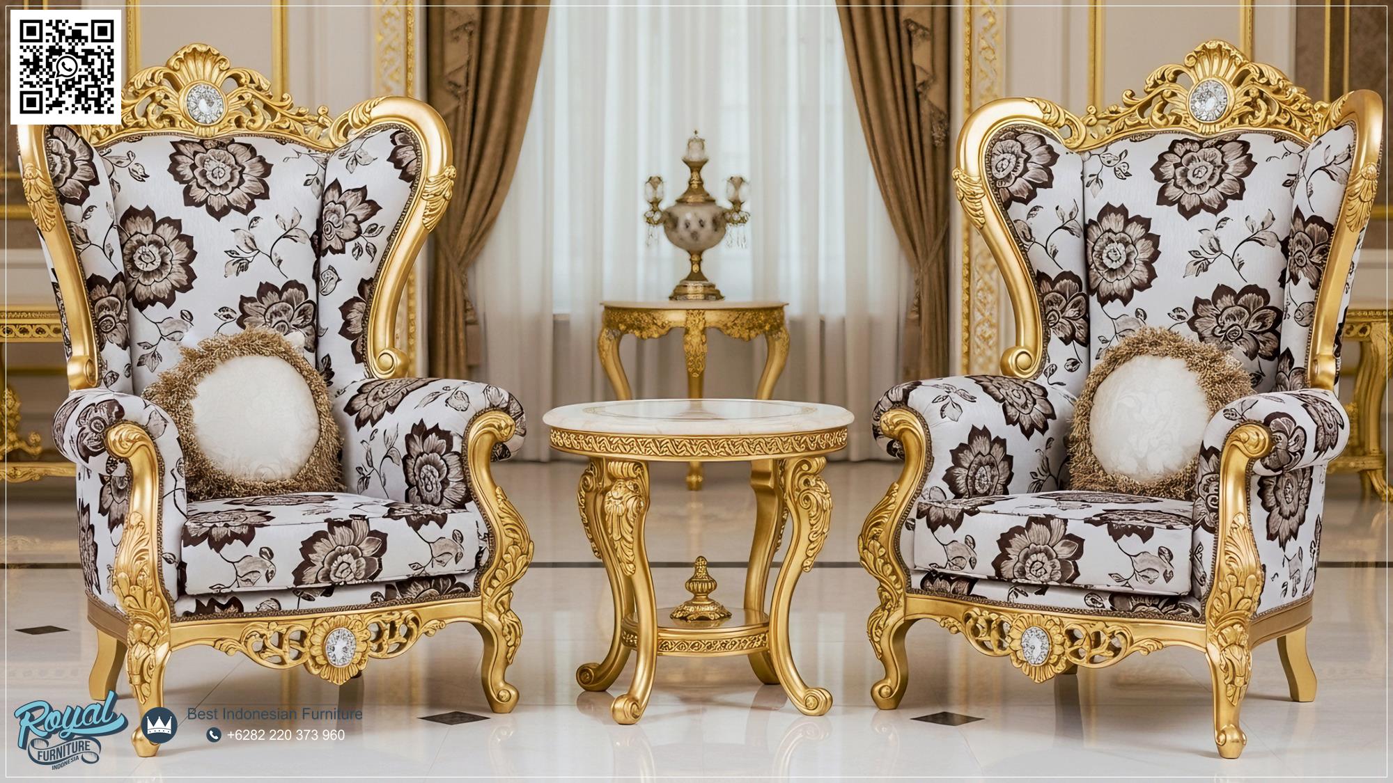 Set Sofa Teras Mewah Ukiran Emas Jepara – Gaya Klasik Sultan