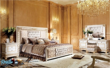 Set tempat tidur mewah bedroom terbaru untuk pengantin ini kami menggunakan Aplikasi Finishing Spray dengan warna Classic White Combine Gold (Duco) sehingga hasil akan rapih dan halus.